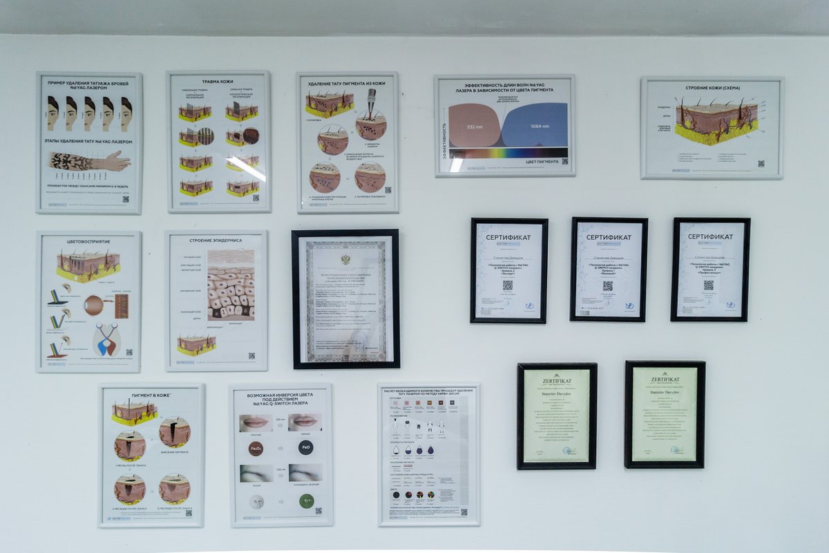Каждая процедура включает в себя консультацию,сбор анамнеза, а так же осмотр на нашем уникальном дерматоскопе ''Babor'', увеличивающим изображение в 200 крат с ИК и УФ лучами,что позволяет оценить целостность кожи, количество краски и химический состав частиц. На основании полученной информации подбирается индивидуальная методика удаления для каждого клиента,что позволяет уменьшить количество сеансов. В процессе работы на лицензированном лазере «Melsytech Superfull» место воздействия охлаждается специальной криоустановкой, которая снижает дискомфортные ощущения и защищает ткани от перегрева.